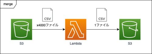 AWSのLambdaで S3にある複数のファイルを一つにマージして別のS3に置く、ただし1分以内で こんな仕組みを実現するために考えたことを共有しようと思います。 このブログを読むと分かること 前提条件 イメージ 対応 S3から4000ファイルをダウンロードする ダ…