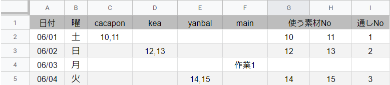 $M$2は写真無いけど、素材Noの初期値が入ってます~